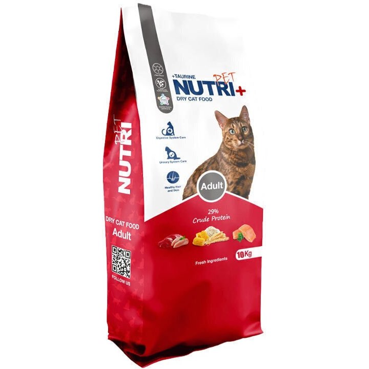 غذای خشک مناسب گربههای بالغ تهیه شده از مواد اولیه با کیفیت بر پایه مخلوط گوشت و سبزیجات و ماهی داری 29 درصد پروتئین خالص فرموله شده برای نیاز بدنی گربه های بالغ حاوی ویتامین ها و مواد معدنی ضروری