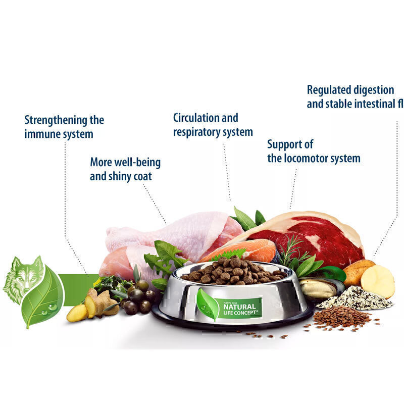مناسب برای تمامی سگ های بالغ نژاد کوچک مخصوص رشد بصرفه توله سگ ها تغذیه متعادل و مناسب و بدون شکر بدون استفاده از محصولات پروتئینی ژنتیکی 100% طبیعی دارای گیاهان با ارزش محلی هضم آسان و راحت برای توله سگ های 4 هفته تا 6 ماه حاوی پروتئین حیوانی مانند گوشت بره، مرغ، گوشت گاو، ماهی، تخم مرغ